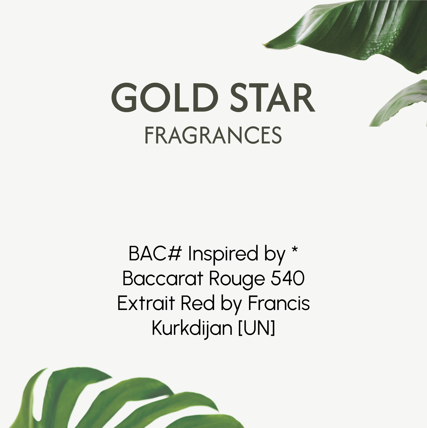![BAC# Inspired by * Baccarat Rouge 540 Extrait Red by Francis Kurkdijan [UN]](http://www.goldstarfragrances.com/cdn/shop/files/1105_BAC_Inspiredby_BaccaratRouge540ExtraitRedbyFrancisKurkdijan_UN.png?v=1757646171&width=1445)